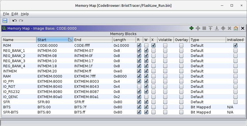 | Briot Tracer - Ghidra Memory Map RAM Block |